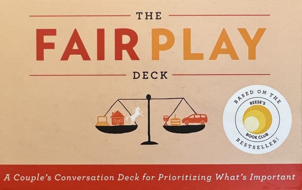 I have seen many women recommend the book “Fair Play” by Eve Rodsky. Since I liked the summary points of the book (fair warning–I have not read the whole book yet), I invested in the deck of fair play cards. The cards are designed to make the invisible load of tasks needed to run a household more visible for everyone involved. The card game is meant to facilitate redistributing household tasks equitably. I really appreciated Eve Rodsky’s emphasis on conception, planning and execution being an integral part of owning the task.